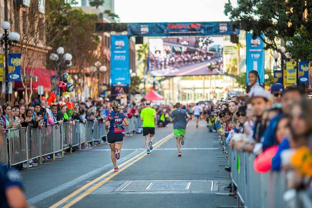 La media maratón de San Diego comienza en Petco Park, recorre el centro de la ciudad y sigue por Harbor Drive con vistas a la bahía, el horizonte, Spanish Landing y Cancer Survivor Park. A continuación, pasa por la histórica Liberty Station, pasando por NTC Park y el Marine Corps Recruit Depot San Diego. Por último, los corredores suben por Washington Street a través de Mission Hills y Hillcrest antes de bajar por la cuesta pasando por las palmeras de Balboa Park. Todo termina con una llegada épica en la 5ª Avenida, con una pantalla gigante en directo y una fiesta en Gaslamp Block. Tiene lugar el 22 de marzo .
