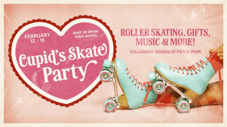 Cupid’s Skate Party convertirá Gallagher Square, en Petco Park, en una festiva pista de patinaje al aire libre del 12 al 15 de febrero, con decoración temática, sesiones fotográficas, DJ en directo y mucho más. Las entradas cuestan a partir de 12 $, o 27 $ con una sesión de patinaje de 2 horas que incluye el alquiler del equipo. Entre lo más destacado se encuentra la noche temática de Galentine el viernes y un día especial para las familias el domingo, con momentos de patinaje para madres e hijos y padres e hijas.