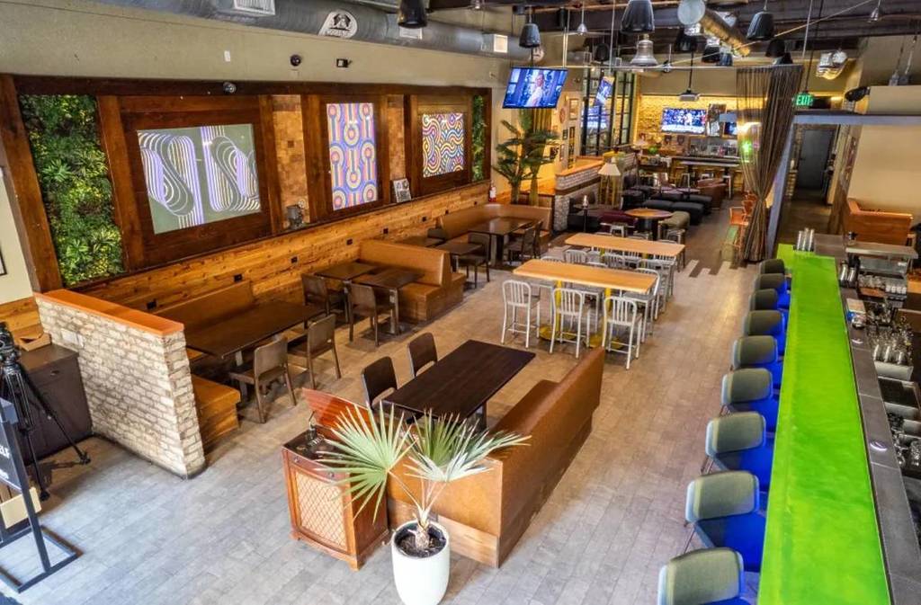 Taking over the former space of The Local, Timestead is serving up major “intergalactic cowboy energy,” combining retro western and futuristic sci-fi elements. Think warm wood, brushed steel, and a design that feels like a retro-futurist living room where you actually want to linger. It’s laid-back, stylish, and sounds as good as it look – ’cause it’s also the neighborhood’s first record bar complete with an actual vinyl shop inside, via Vinyl Record Rarities. You can snag a new record for your collection right at the bar!